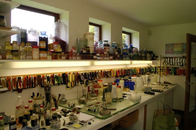 Jacques, perhaps a shy man outside his lab, has absolutely no second thoughts about the quality he produces. He is totally happy if his oil paint is the most expensive on the market (it actually isn’t always) and adamant no student quality is ever going to be made here, no acrylics, no mixture of pigments. In his literature you can read sentences like: “We do not, and never have, prepared transient or unstable shades. A classification by degree of stability would, therefore, be out of place.” It could be a little on the snob side perhaps but in this world where the best companies sell their souls and shortchange their personnel to make an extra dollar or use rapturous words to describe an inferior product… I actually love it!