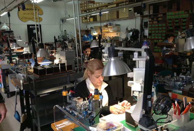 And now to what is made here in Barcelona. In a sweatshop in China or India, you would call it an assembly line perhaps. Here, when you see the team’s dedication, obvious delight and pride in craftsmanship, it becomes a savoir-faire, some sort of minor but vital artistic achievement reproduced 30 to maximum 50 times an hour… depending on the size of the brush of course and how slippery the hair is. That’s the rhythm achieved after two or three years making brushes which is fine as most have been in the company for decades and the Escoda family planning no move to nowhere… Cheaper employees there or not! I kind of got the idea they like their turf and are pretty proud to be Catalans to boot… the lifestyle doesn’t look too bad either with a little garden, parasols and tables set out for lunch along the side of the fábrica and a lot of consideration given to making everyone’s job station personal, clean and comfortable and, as far as possible, the jobs more interesting too.