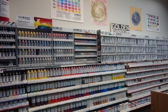 Stabilizers are useful too or your paint might become solid rock when it leaves New Berlin in the middle of winter and freezes in the truck and… might stay like that! ASTM* standards require paint to withstand 5 Freeze-Thaw cycles with no loss of quality, hence stabilizers. Rain, shine or worse, properly sealed in its jar or tube, Golden’s acrylic paint should be able to sleep there quite happily for up to 25 years. Which is great because you might not use that colour too often, right?