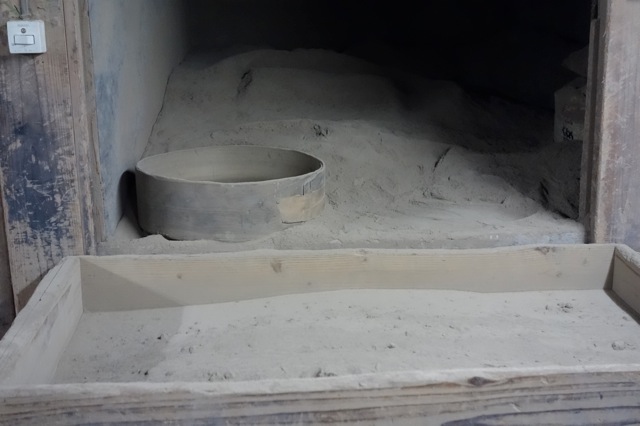 Step five, the little cakes go to dry in big wooden trays buried under layers of rice husk ashes… it’s very very fine (think rice powder) and will absorb already a lot of the humidity.