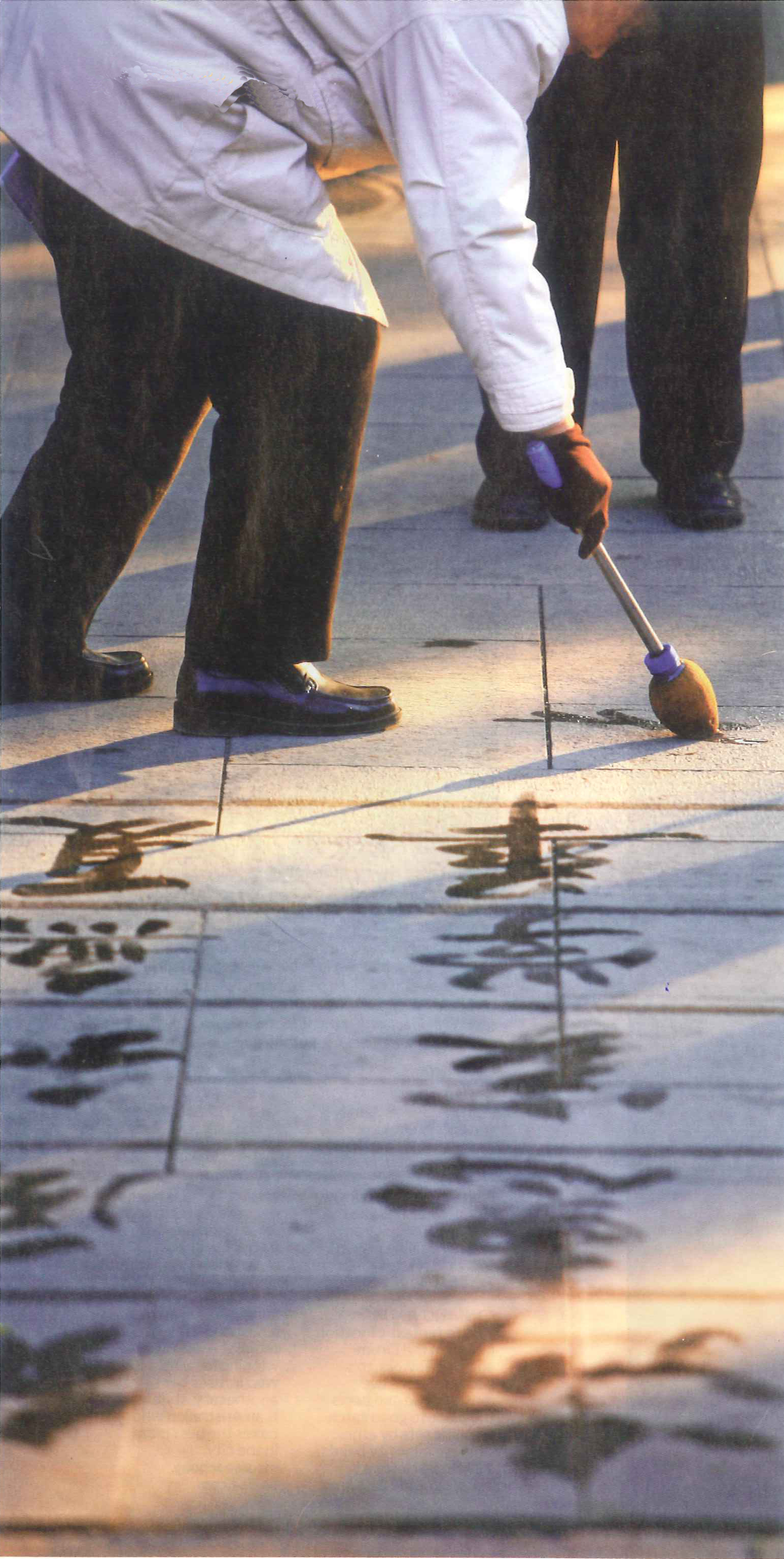 Step seven is shell polishing of the sticks and eventually, for the better inks, hand painting or gilding of the inscription or even the whole stick. (These steps are performed in the summer months when the humidity halts the ink making.)