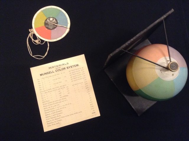 Next to the bubble is another invention of his, a disk that, when spun, will show youif the percentage of colours you have chosen for any given artwork will produce a delightful neutral grey. And when I say delightful, I mean delightful to Alfred. Because the man not only classified and ‘notated’ colours as you shall understand soon, but he also approved or disapproved of art or design in which colours are “poorly related and do not balance in neutral gray.” Of course that’s what his 6 primaries in equal shares produce but it also seems, perhaps after a sojourn in beautiful grey Paris, that Alfred had developed a taste for colour harmony that would imply that a “neutral” result would be the best possible outcome. It is, however quite difficult to see if the proportion of colours in an artwork will produce the sought for grey. But not if you have one of these!