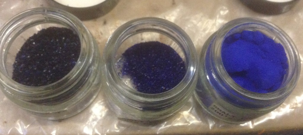 Then I put you to the binder test and, whilst I’m mulling you on the slab to turn you into paint, some of you seem totally reluctant (not pointing the finger, but Dragon’s blood and charcoal are truly difficult) while others are simply bending over double to please me (top marks given to lead white… and, whilst I knew painters were devastated to give it up, I now understand why)