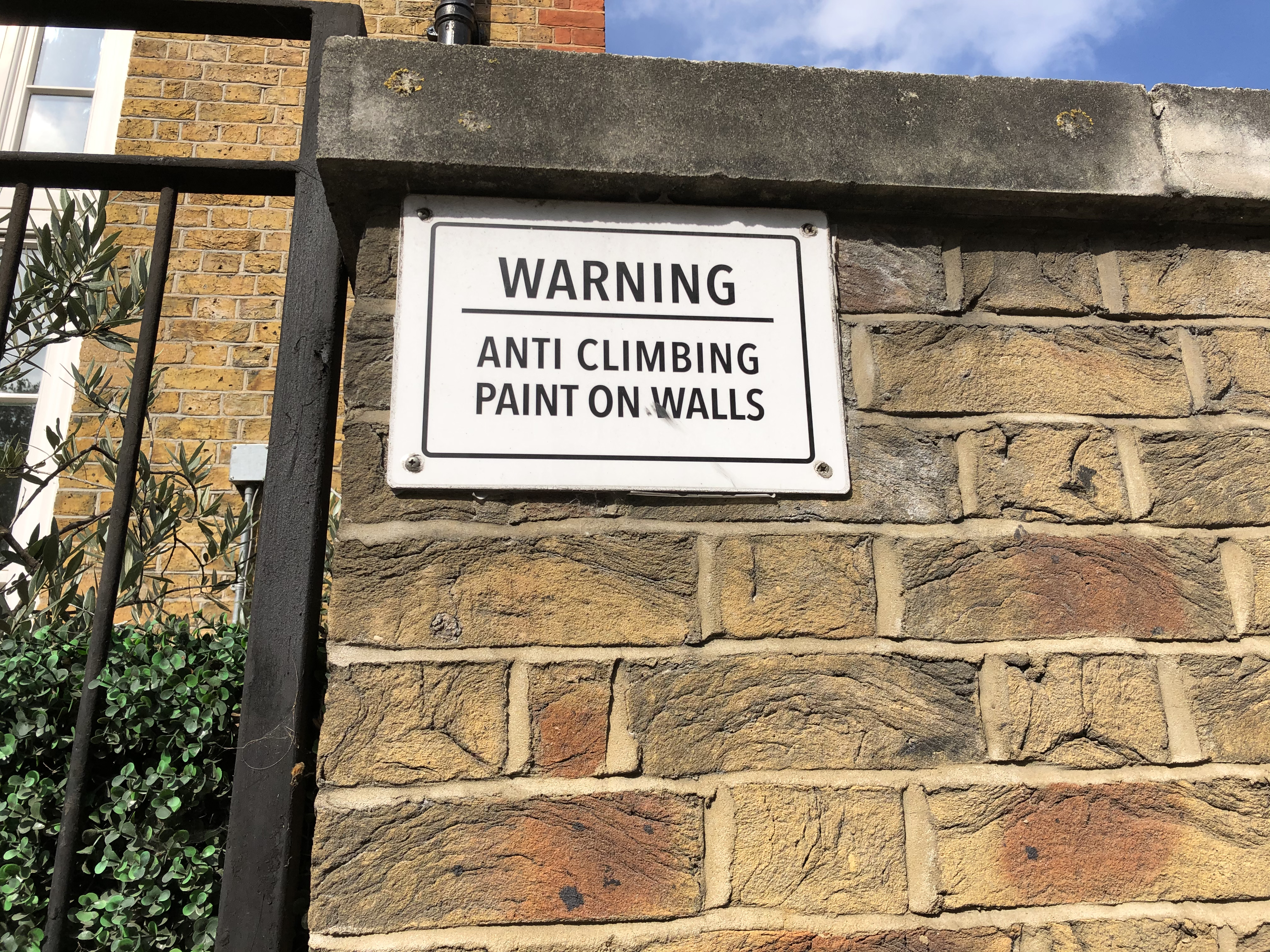 That sign, all over London properties, had me totally baffled. What on earth might this paint contain? Shards of glass? A super-slippery binding agent?