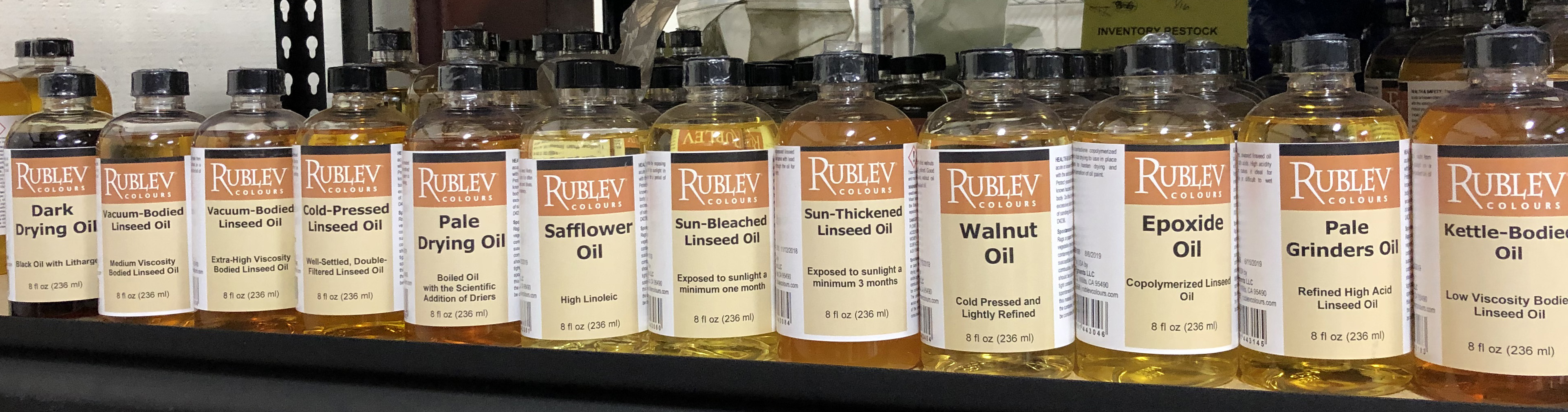 Eventually, and most presumably after having tried everything that grows under the sun, painters and, later, paintmakers, have stuck with linseed, poppyseed, walnut and, more recently, safflower oil. The overall favourite is linseed, obtained from the seeds of a plant belonging to the Linaceae family (Linum usitatissimum), and we’ve quite inventive with variations of that product. It can be used raw, and the golden cold-pressed extraction is considered the best quality due to its higher linolenic acid content, which improves wettability and dries to a hard, durable film. However, the drying time is particularly effective in boiled linseed oil. In the good old days of The Great Masters, a sun-thickened painting oil was also used as a painting medium, during which a fatty oil (oleum crassum) was formed by the slow absorption of oxygen in sunlight. This gave the painter a fantastic tool to move the paint around and yet still ‘dried’ relatively fast. (They were obviously just as impatient back then as we are now!) Linseed Stand Oil, on the other hand, is heated without oxygen. The process prevents oxidation yet produces a slower-drying oil. One, however, that is very weather-resistant and dries to a pleasant gloss. Refined Linseed oil (not often called Alkali-Refined Linseed, as it should be) is a more recent addition to the options in which the oil is extracted from the flax seed using solvents and a steam-heated pressing method, then treated with alkalis and washed in water to remove the precipitated salts.