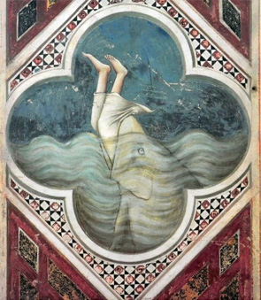 Giotto, Jonas swallowed by a whale, (detail in the Cycle of the Life of Christ), 1303-05. Scrovegni Chapel, Padua, Italy.