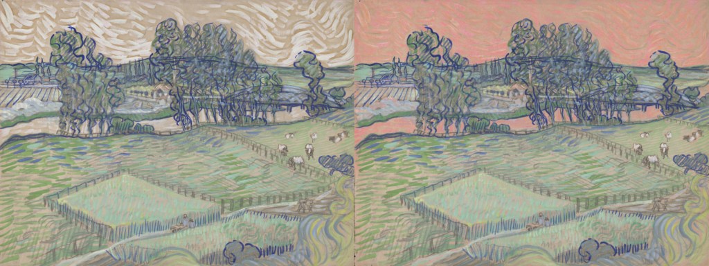 We could also decide not to care about posterity and accept that some of our colours will dull and shift under our very eyes. Van Gogh, always the romantic, was well aware of the issues of the new pigments of his time: “All the colours that Impressionism has made fashionable are unstable,” he wrote to his brother Theo in 1888, adding in another letter later that “paintings fade like flowers.” Yet this is hardly an option for most professional artists who usually want their works to be around for a while—even if they cannot resist a new colour when it comes on the market and opens a whole new colour space. No more than Van Gogh could resist that new Geranium Lake or Golden Yellow Lead Chromate, could Rothko resist Lithol Red, nor artists in the 1960s resist the fluorescents when they hit the market (nor today for that matter) even if their drawbacks are well known. Alas, the geranium faded, Rothko’s Harvard paintings have shifted beyond recognition (or restoration), and so have all these fluoros. Still, they are fun to use and exciting while they last.