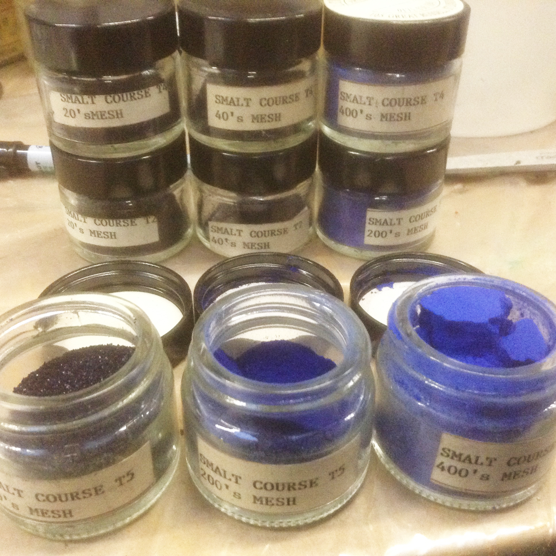 P.S. While cleaning it recently, it has been noticed that Van Eyck, in his masterpiece The Adoration of the Mystic Lamb, superimposed two layers of malachite, ground at different sizes. Did he do this purposefully in order not only to obtain slightly different hues (a shift that occurs under your very eyes as you grind further so he would have known) but also different opacities? Could it be, disappointingly, that the apprentice became lazy and didn’t grind as finely one of the batches? We will never know for sure, of course, but I really grin with delight (and hope you will too) when entertaining the idea that this Master of unequalled technique and observational skills could have, six centuries ago, totally understood, perhaps not, but at least known enough to play with one of the many Tricks of The Particle Size!