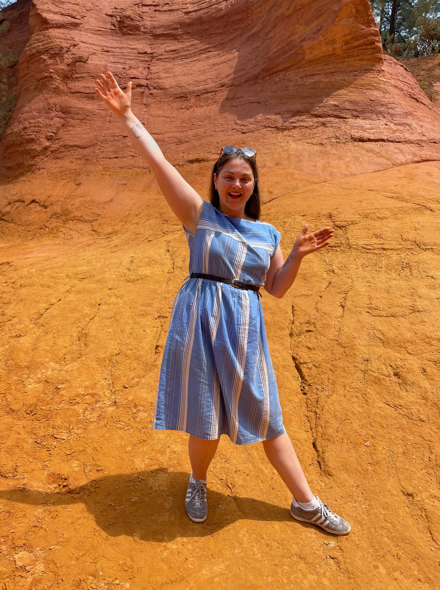 Photo: Lucy Mayes in the natural ochre site of Roussillon. © Sabine Amoore Pinon