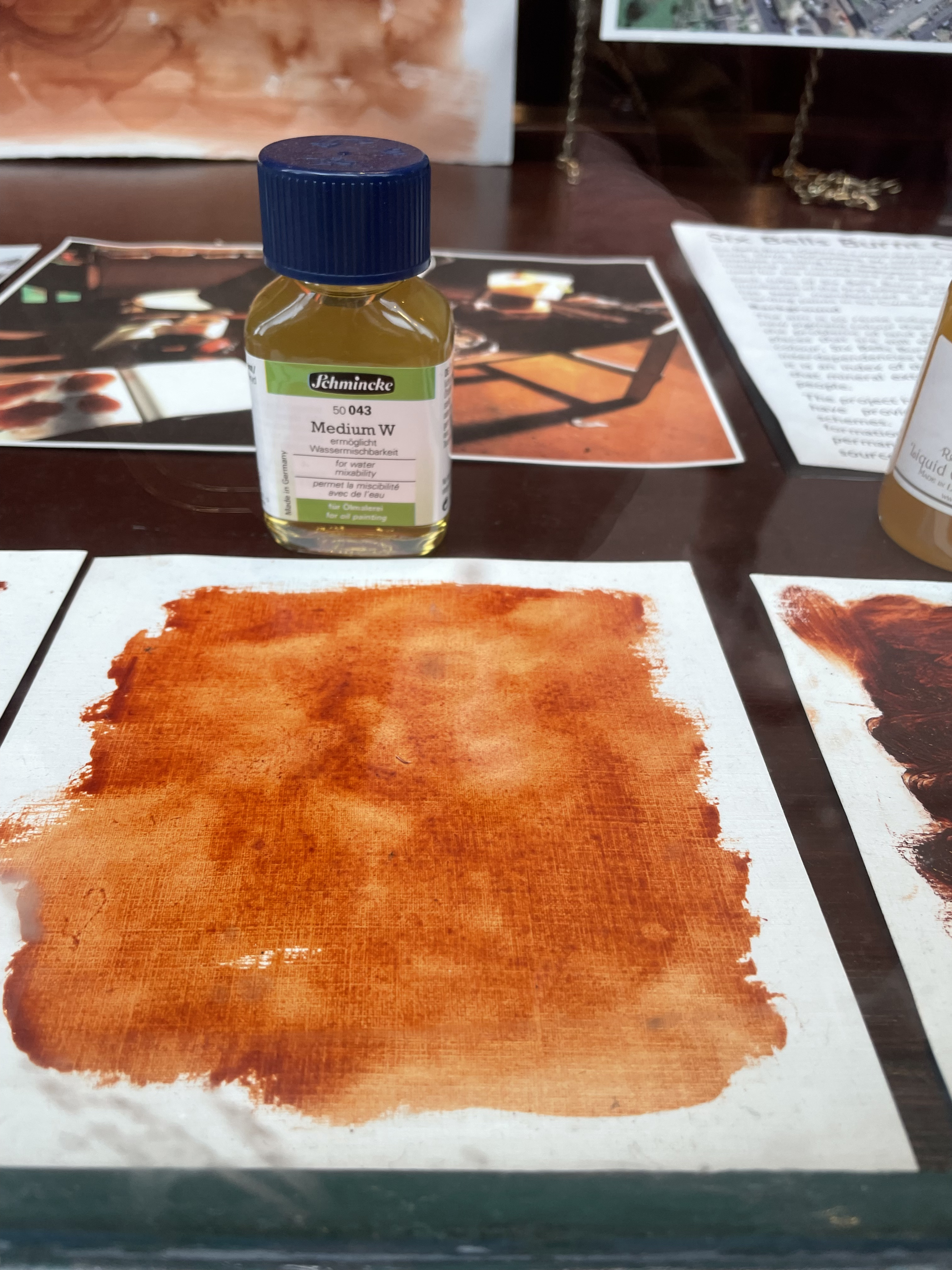 Materials dictate their terms and conditions. You (unfortunately, perhaps) might not be aware of having ticked “I agree” to a 24-page document when you decided to play with a new binder, but in truth… You have! And it will let you know soon enough. It certainly did so to some poor pigments who had to step down their pedestal. Malachite is such a pigment. Ground fairly coarsely, it could display its vibrant green in a fresco or egg tempera and was used for centuries. In Japan, where it was used as a watercolour, it was purposefully ground in three finenesses, allowing artists to achieve dark, medium, and light tones. Yet, in the finer grind required by oil paint, Malachite turned so pale as to lose the interest of painters entirely. It was then relegated to background use, layered with transparent copper resinate to revive it.1 Smalt, the poor man’s blue, also liked a coarser grind and turned a pale grey in oils, while genuine Ultramarine becomes so transparent that, to painters’ despair, it would regain opacity and full presence only when blended with a touch of Lead White.