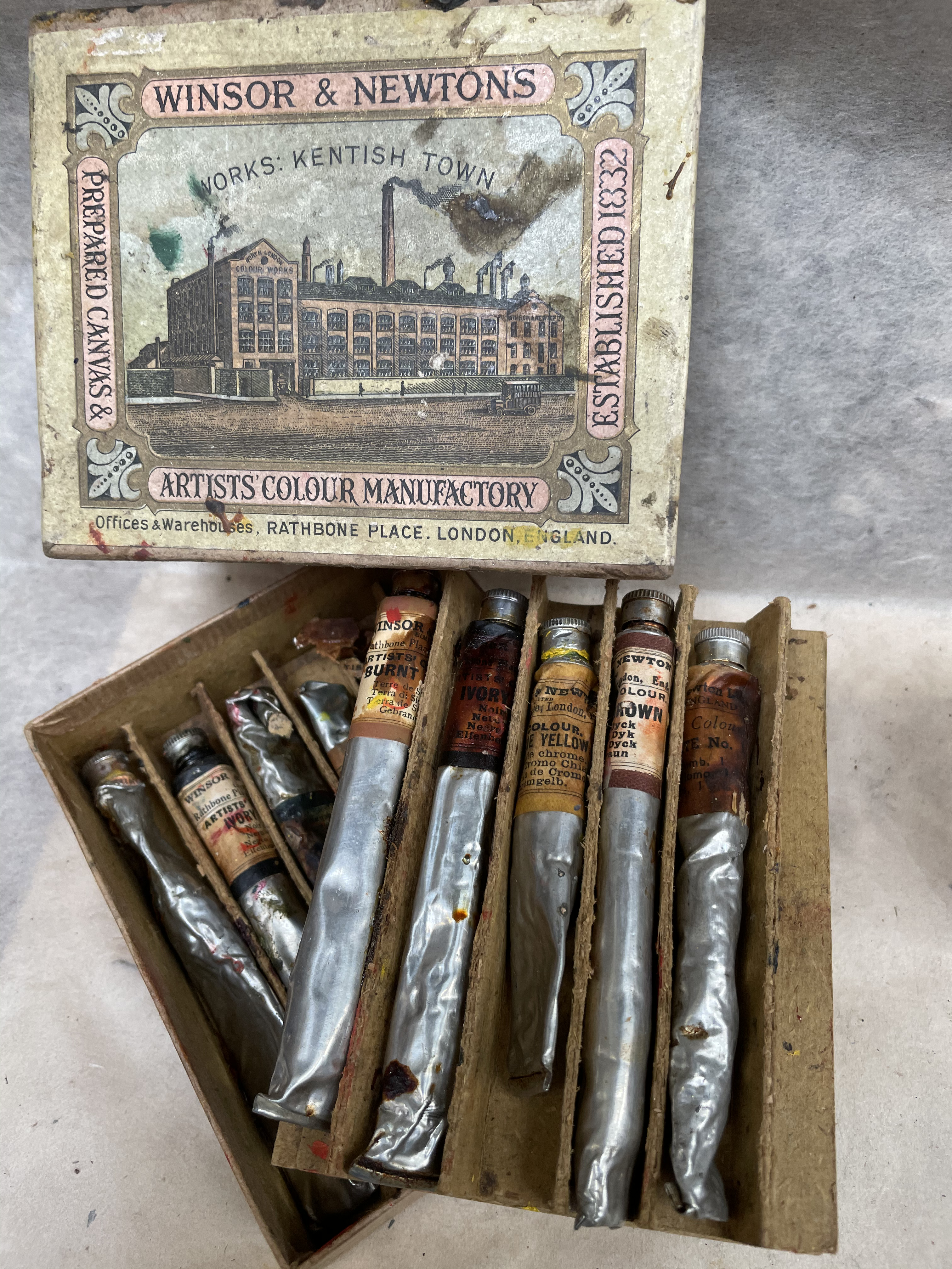 For example, it is Alexandre Lefranc, from the paint company nowadays called Lefranc Bourgeois, who understood tin altered the pigments less and devised the screw cap, giving the tube its ‘other side’ if you will: the shoulder, neck and cap, which can hermetically seal the paint, sometimes so annoyingly so. (But do remember you can always unfold the crimp at the other end and scrape out that last dash of yellow you desperately need in the middle of the night.) However, before Lefranc and Rand’s patent and manufacturing operation, there is proof that some artist colours were already packaged in tubes by Reeves & Son, Rowney & Co. and Roberston & Co. When a good idea is floating in the air, many will sense it, even if they don’t then take full advantage of it.