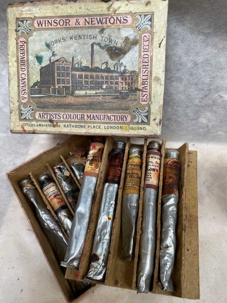 The dissemination of hard-earned knowledge, previously held by art-chemists/painters, into ready-made paint in tubes and mediums you could buy over the counter must have enticed many a young aspiring artist to try her hand at it. Ladies, at first, seemed to have developed a predilection towards the more gentle watercolours, while oil paint (always the most ‘serious’ one n’est-ce pas?) suited the gents’ temperament better, perhaps? But in truth, and whatever they painted with, paint became more democratic, and that was perhaps Rand’s tube most important contribution (not quite sure what Raphael would have made of Bob Ross or paint-by-numbers, however…)