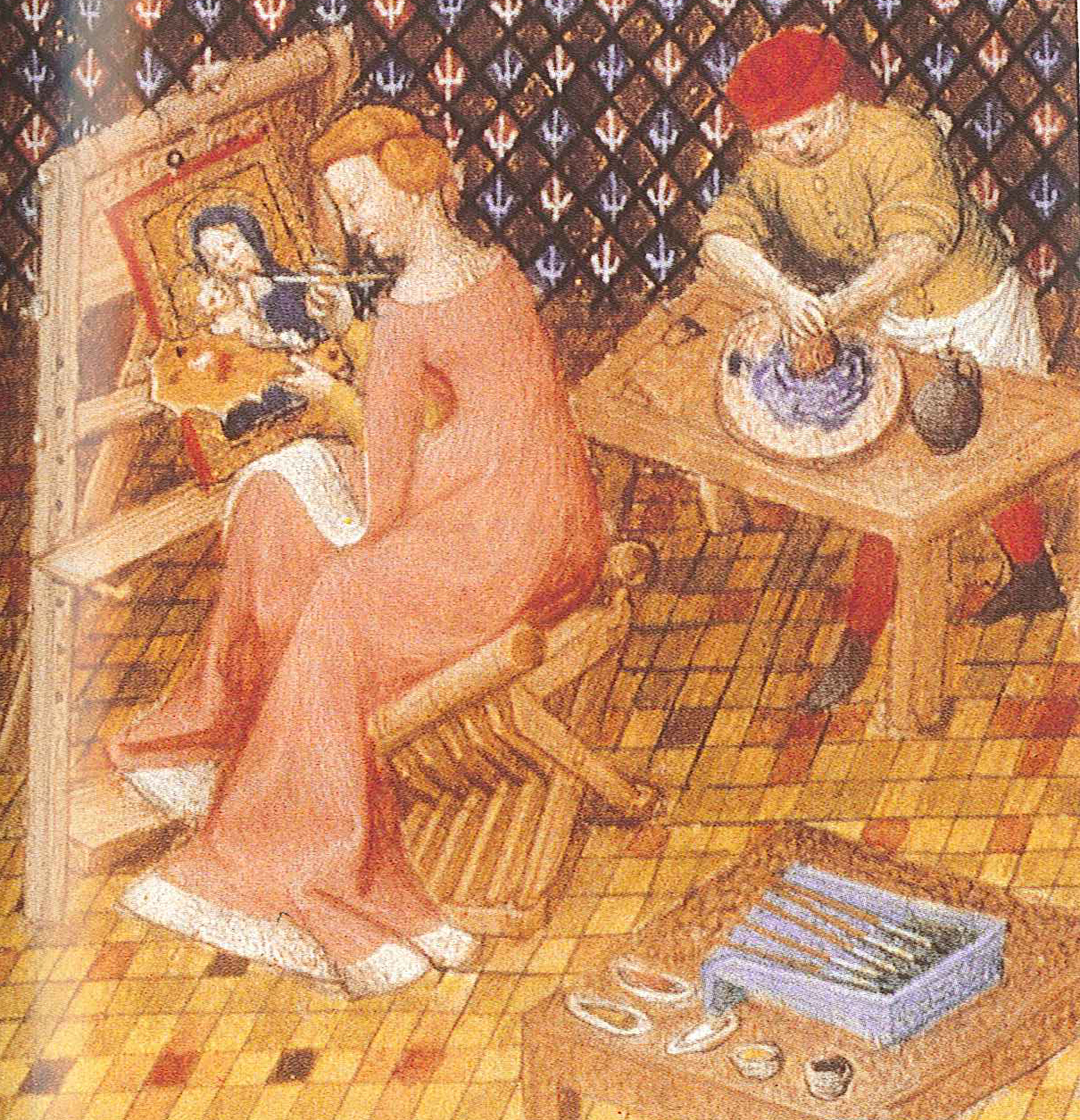 Maitre du Couronnement de la Vierge, Timarété painting, c.1403. Miniature from Boccace’s Livre des Clères Femmes, Fr.12420. Bibliothéque Nationale de France, Paris, France.