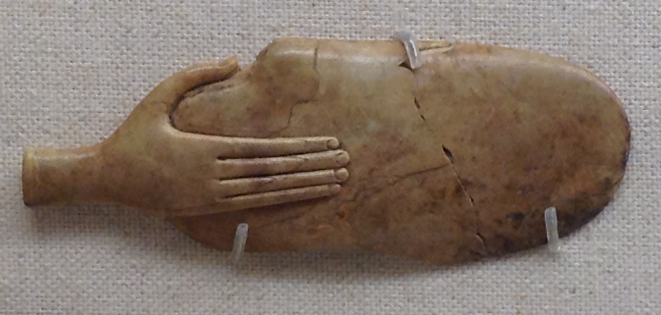 One of the two abalone shells containing an ochre-rich mixture that were found at Blombos Cave in Capetown, South Africa. c.100,000B.C.E.