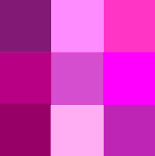 That colour is the zip at the back of the colour wheel, if you will. My analogy referring to where infrareds and ultraviolets would merge if, instead of a band, you chose to see a circle. But can you see it anywhere on the spectrum? No, and that’s because, contrary to all other visible colours with a specific wavelength, magenta doesn’t have one, so it actually does not ‘exist’ on the light spectrum. Our brain creates it, though, to fill in that space coherently, and having only RGB, i.e. red, green, and blue, cones to translate all colour information, as always, it interprets what it sees. For example, when blue and yellow mix, it averages a green, as we all know. However, when red and purple blend, it should also average green, the wavelength halfway between them. But the brain doesn’t like that result, which is obviously confusing as we’ve already got a green. So with the radically different red and purple at opposite ends of the spectrum, our clever brain “invents” magenta instead, the complementary colour to green and the colour of the afterimage you would get after staring at green.2 More than all others, and maybe (I would like to believe) because it’s left entirely to our imagination, magenta is a truly imprecise colour. If you Google it, you see the range of variations on the theme from the Magenta in CMYK to a Magenta coming out of a paint tube… quite crazy! (Still, I’ll stick to my guns; nothing like Rose Madder!)